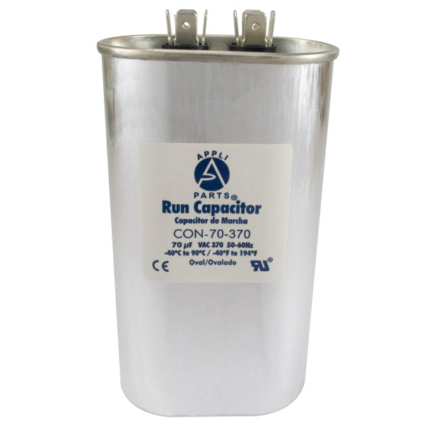 Appli Parts Run Capacitor for ac 70 Mfd uF (microfarads) 370VAC CBB65 Oval Universal fit for hvac and other applications in High in Wide CON-70-370