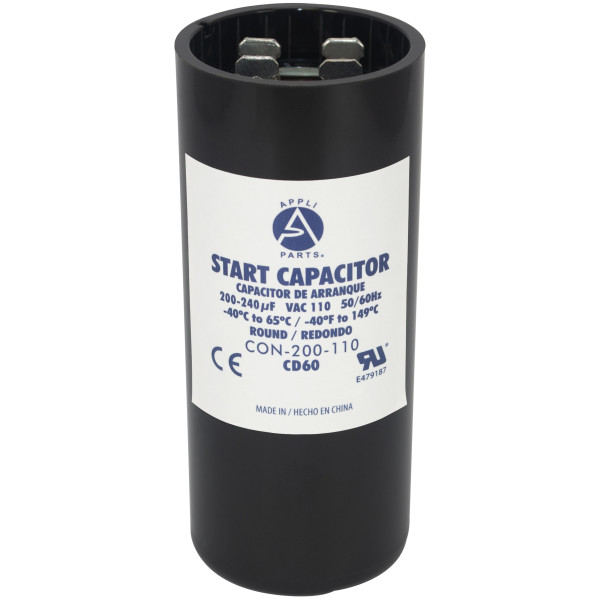 Appli Parts CON-200-110 Motor Start Capacitor 200-240 MFD uF, 110-125 VAC. Universal for Electric Motor Applications, 1.44 in Wide, 3.38 in Height
