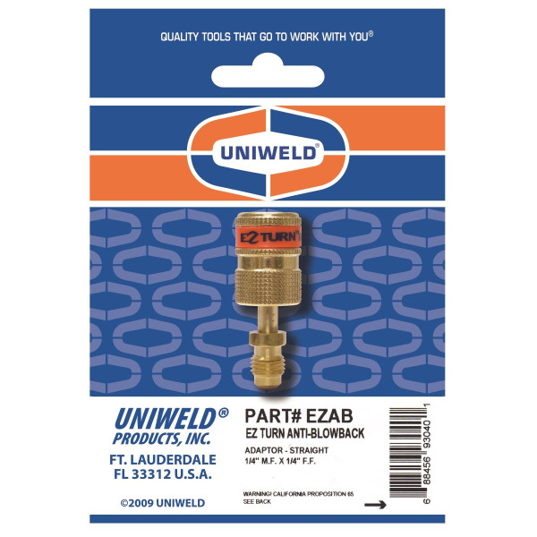 Uniweld EZAB Ez-Turn Anti-Blowback 1/4 in MF X 1/4 in FF Mini Split Ductless Adaptador R-410a, CFC, HCFC and HFC rated
