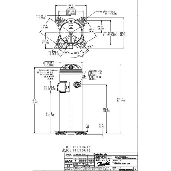 Danfoss DCJ091T2LC6A 7.5 tons 91.000 btu/h R410A Compresor Scroll para Aire Acondicionado 208-230/3/60 (V/Ph/Hz) Descarga 7/8 pulg, Succion 1-1/8 pulg, ODF, Aceite PVE 121L5003 Remplaza 121L5002, 120U2307, 121L8589 HCJ090T2LC6A