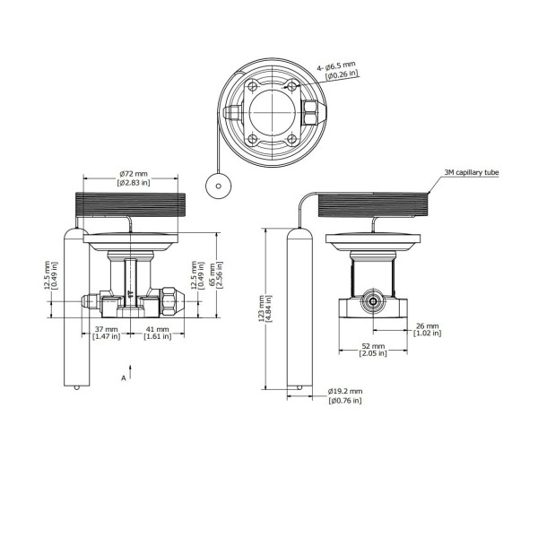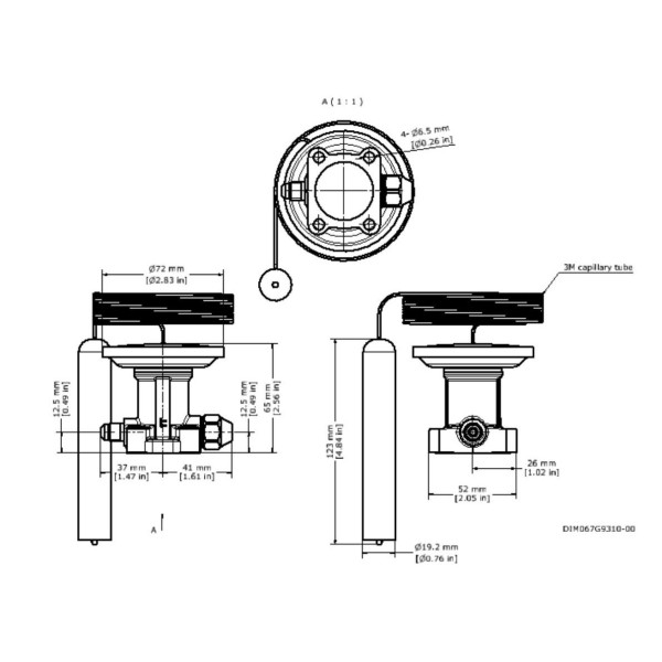 Danfoss Elemento Termostatico para Valvula Expansion R404 / R507 Puerto Ecualizador 1/4 Rango Temp -40C a -10C Capilar 3m 067G3302 TES55