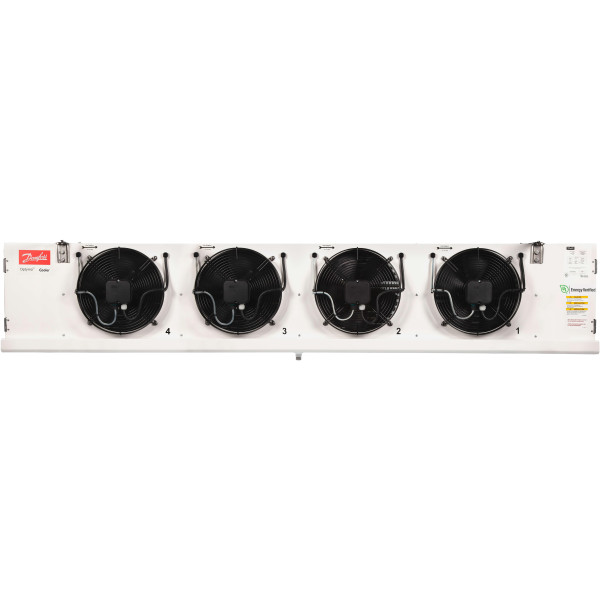 Danfoss 114U0006 Evaporador Optyma MBP 5K Btu/hr a 25F SST R404 Descogelamiento Natural 6FPI Perfil Bajo 4 x Ventilador Axial ECM 300mm DACC RX L050.1A4/A1 230v/1ph/60hz