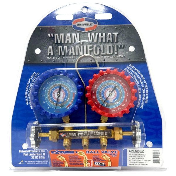 Uniweld A2LM5EZ Juego Manometro R-32/R-454B/R-448A/R-410A Fahrenheit psi, Mangueras 5 pies EZ Turn